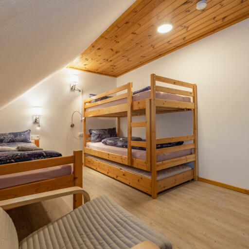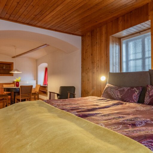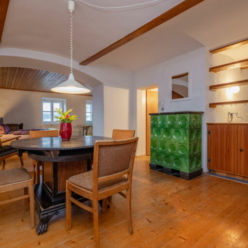 Komfortable 3 Zimmerwohnung (85m2) für 4-6 Personen, große Küche mit Kachelofen, Badezimmer und Kaminzimmer.