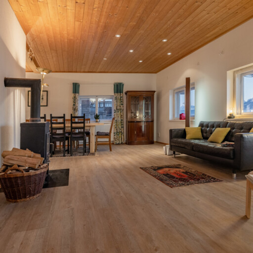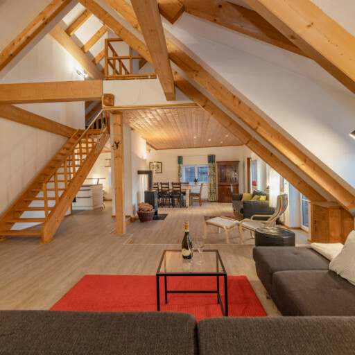Exklusives Dachgeschossappartement (210m2) für 6-10 Personen über zwei Etagen mit drei Schlafzimmern, zwei Badezimmern, Wohnbereich mit Kamin, großem Balkon und offenem Koch- und Essbereich.