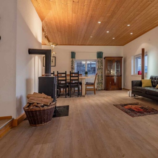 Comfortable 3 room flat (85m2) for 4-6 persons, large kitchen with tiled stove, a bathroom and a fireplace room.